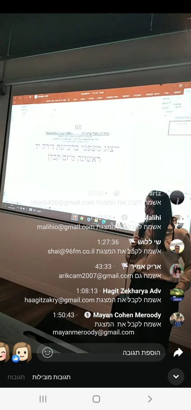 ההרצאה הועברה לעורכי דין במסגרת השתלמות מקצועית של לשכת עורכי הדין.